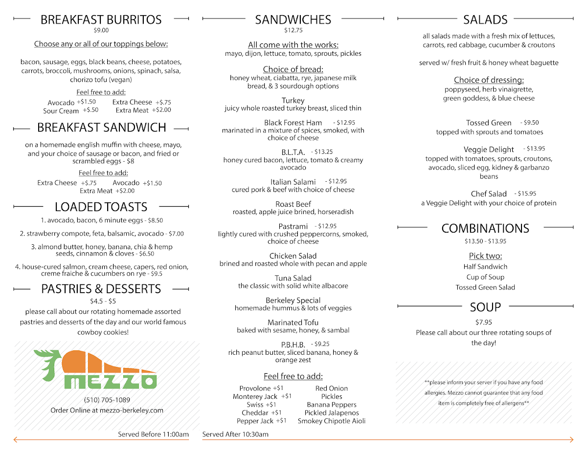 Located in the vibrant heart of Berkeley, California, Mezzo is not just your average sandwich shop; it’s a haven for fresh, hearty, and health-conscious meals. Nestled at 2442 Telegraph Ave, this culinary gem offers a warm and inviting atmosphere, complete with a lovely back patio perfect for enjoying your meal in the sun. The combination of delicious food and friendly service makes every visit here a delightful experience.