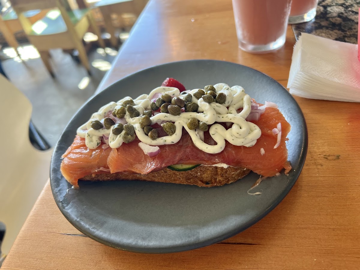 But Mezzo's offerings extend beyond salads. Their Loaded Toasts are a treat in their own right, featuring combinations that range from the savory—avocado, bacon, and a perfectly cooked 6-minute egg for $7.00—to the sweet, with almond butter, honey, and banana drizzled with cinnamon for just $4.50. For a more classic taste, don’t skip the housecured salmon toast on rye, which comes beautifully layered with cream cheese, capers, and red onion for $8.00.